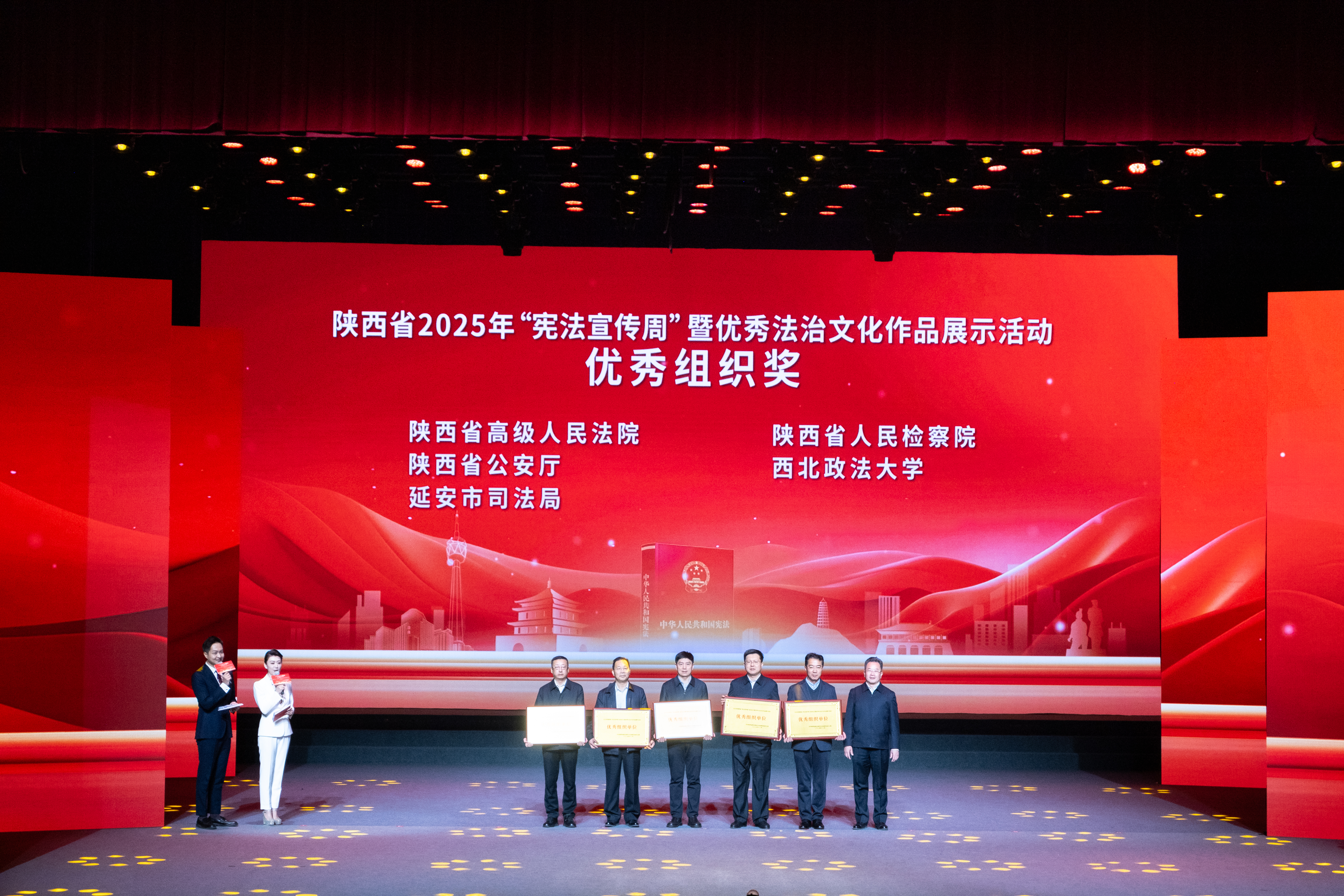 12月1日,由省委依法治省办(省司法厅)举办的陕西省2025年“宪法宣传周”启动仪式暨优秀法治文化作品展示活动在西安举行。省委常委、省委政法委书记刘强出席。beat365党委副书记张军政参加。