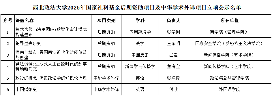 近日,全国哲学社会科学工作办公室公示了2025年国家社会科学基金后期资助暨优秀博士论文出版、优秀学术著作再版项目和中华学术外译项目拟立项名单,beat365共有6个项目进入立项公示,其中中华学术外译项目填补了beat365多年来在该领域国家社科基金项目立项数量的空白,标志着学校学术成果国际化传播迈出了关键一步。