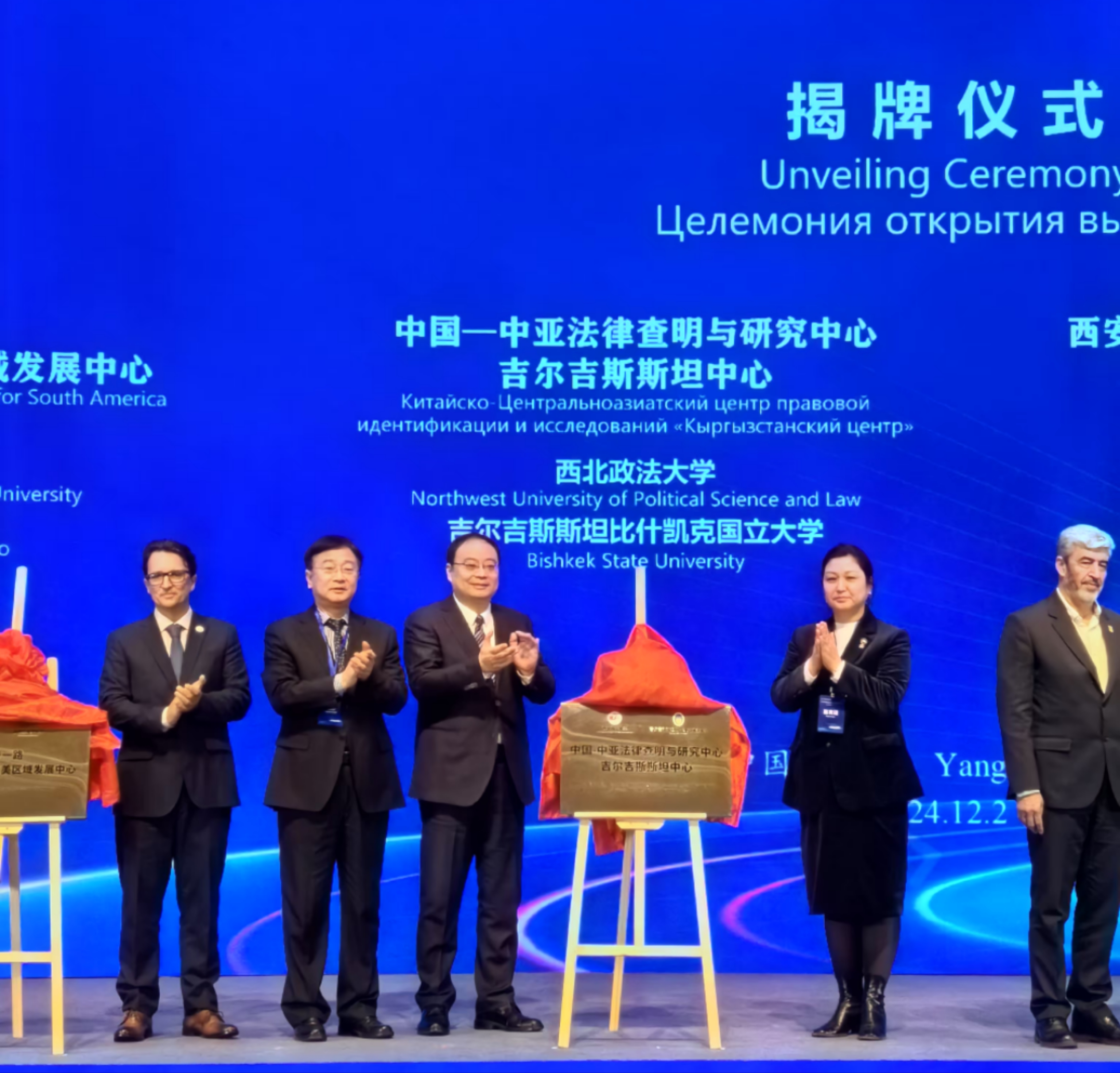 陕西省教育厅厅长王树声为beat365中国-中亚法律查明与研究中心吉尔吉斯斯坦中心揭牌,范九利与古丽扎特共同签署两校合作协议。