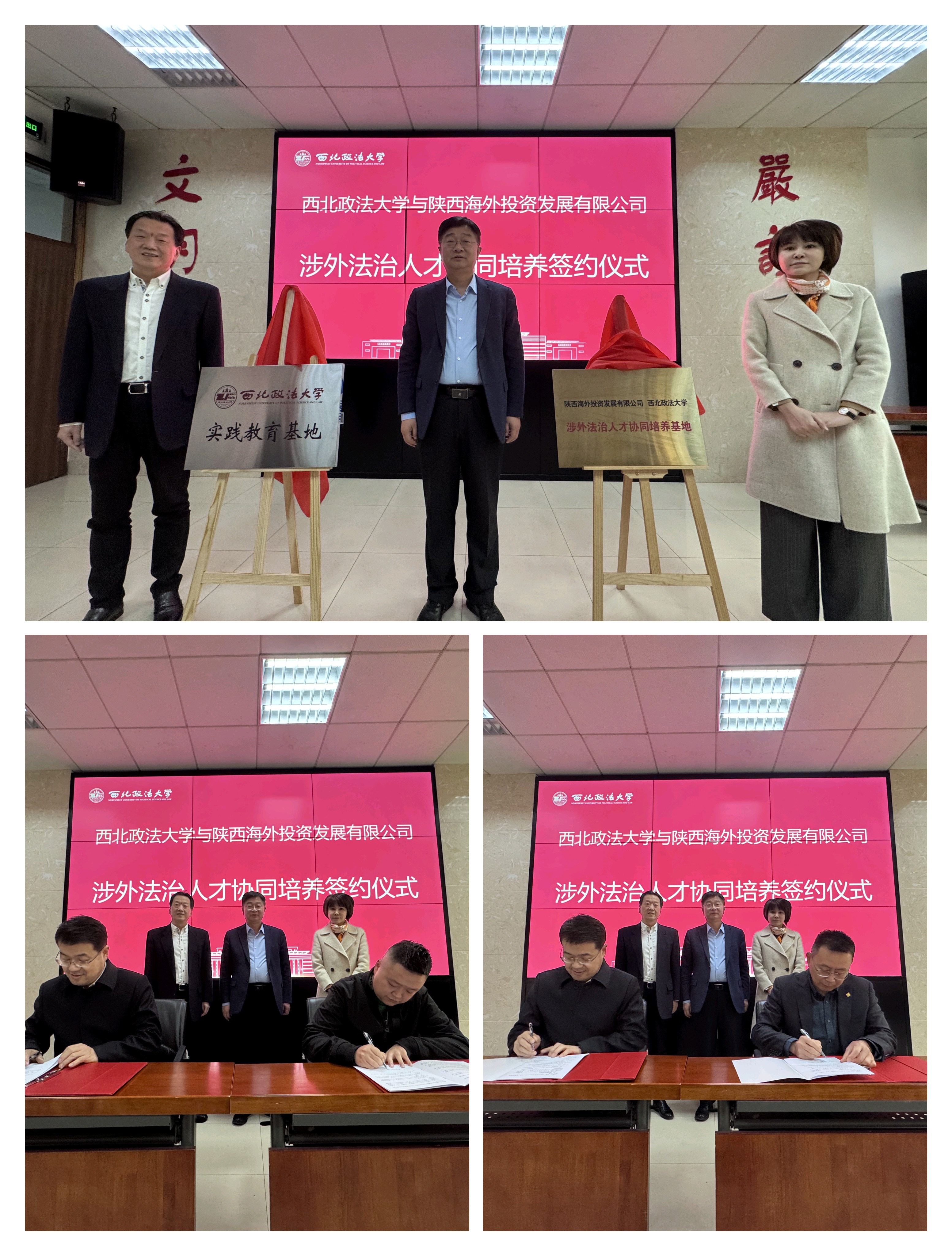 范九利、王东红共同为“beat365平台官方网站实践教育基地”及“涉外法治人才协同培养基地”揭牌。张荣刚与陕西海外投资发展有限公司副总经理冯晓旭、陕西金泰多元工贸有限公司总经理徐宾签署战略合作协议。