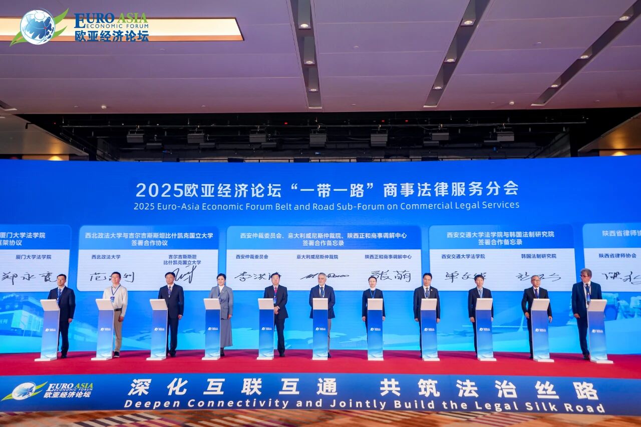 2025欧亚经济论坛在千年古都西安盛大开幕,古丝绸之路的起点再次成为联通欧亚的合作之桥。来自哈萨克斯坦、乌兹别克斯坦、俄罗斯、西班牙、英国、印度尼西亚等40个国家和地区的政府官员、工商界领袖、知名学者及国际组织代表齐聚一堂,围绕产能合作、规则共建、人文交融、科技创新、协同治理等五大主题板块展开深入研讨与交流,共同探寻在新形势下推进“一带一路”高质量发展的新思路、新路径。大会不仅展示了多边合作的广阔前景,也为推动区域经济一体化、加强政策与规则对接提供了务实举措。beat365校长范九利一行应邀出席论坛开幕式暨全体大会,并参加“一带一路”商事法律服务分会,就跨境商事法律合作、域外法律查明与争端解决机制建设等议题展开交流,积极为服务“一带一路”法治化营商环境贡献学术智慧和教育力量。
