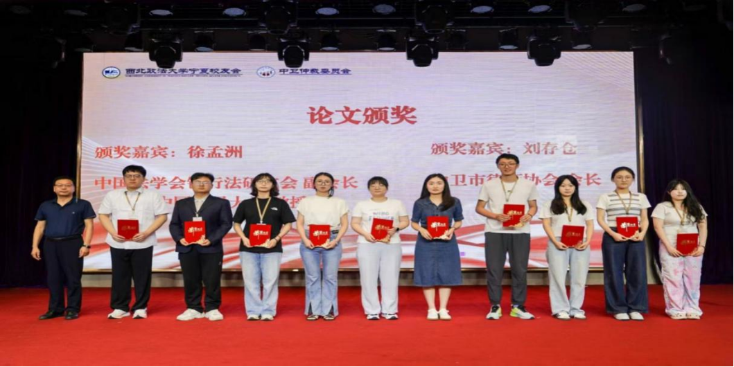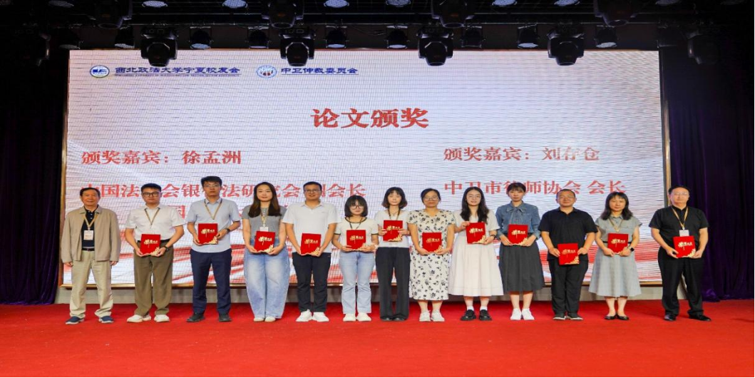 本次会议收到学术论文近80篇,主办方按照严格的评选程序和标准评选出优秀成果并颁奖。本次论坛设优秀论文奖,主要表彰45周岁以下青年学者。北京工商大学法学院教授、北京市税收法制建设研究会副会长郝琳琳宣读本次论坛征文获奖名单,中国法学会银行法研究会副会长徐孟洲教授、中卫市律师协会会长刘存仓为获奖者颁奖。