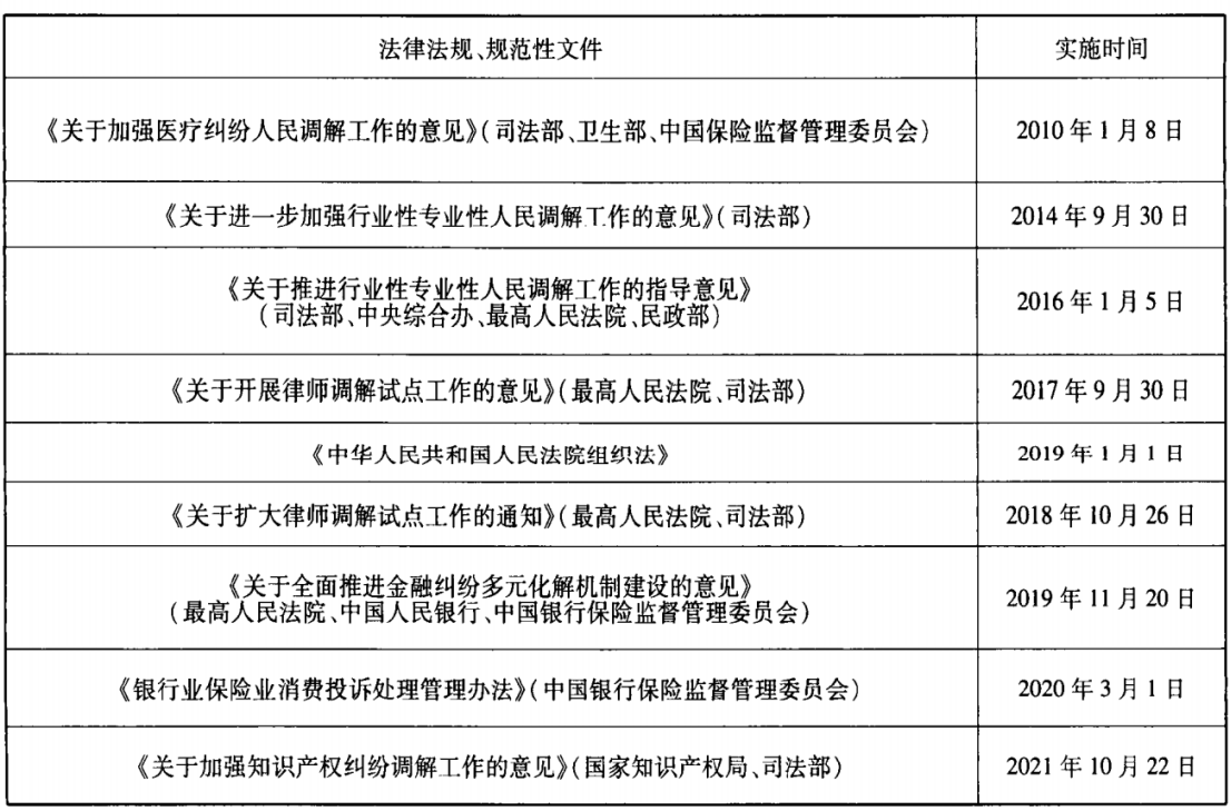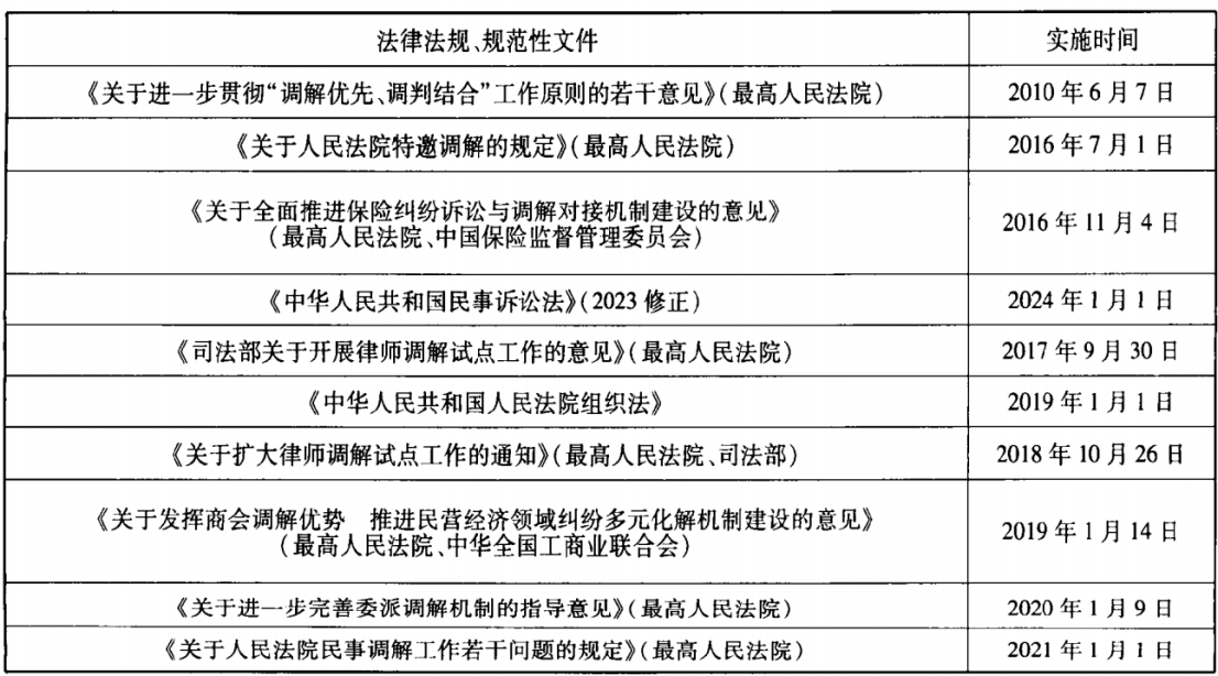 2 现行司法调解法律法规及规范性文件