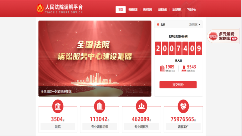 为贯彻落实习近平总书记关于“抓前端、治未病”“要坚持把非诉讼纠纷解决机制挺在前面”等重要指示精神,发挥典型案例示范引领作用,最高人民法院2024年5月启动建设“多元解纷案例库”,经过八个多月的建设和试运行工作,今日,正式上线并向社会公众开放,供国家机关、社会团体、调解组织和社会公众查询、使用、学习、研究。社会公众可以登录网址http://dyjfalk.court.gov.cn访问多元解纷案例库,已经注册人民法院调解平台的用户还可以通过调解平台一键登录多元解纷案例库。