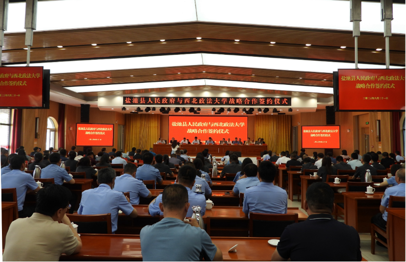 张荣刚表示,双方将以签订战略合作协议为契机,进一步畅通渠道,把教学科研优势推向各级政府和司法系统,推动双方双向奔赴、深度融合;进一步加强资源共享,不断探索扩大合作领域,推动形成高水平研究成果,促进理论研究和区域发展、社会治理、司法实践等形成良性互动;进一步健全合作推进机制,建立常态化联系机制,全面推进“法治政府建设”合作体系,推动形成全方位、多层次的合作关系,共同打造更具规模、更优品牌、更大效应的校地合作新模式。国内合作与校友工作处处长刘霖杰代表学校与盐池县人民政府签订合作协议。