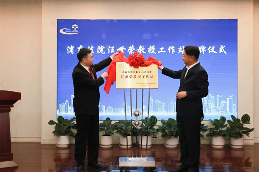 为贯彻落实中共中央办公厅、国务院办公厅《关于加强新时代法学教育和法学理论研究的意见》,根据新时代上海法院队伍建设现代化“1+6+X”工作体系要求,积极探索高校专家进法院柔性挂职新模式,10月28日下午,上海市浦东新区人民法院(以下简称浦东法院)举行汪世荣教授工作站挂牌仪式。