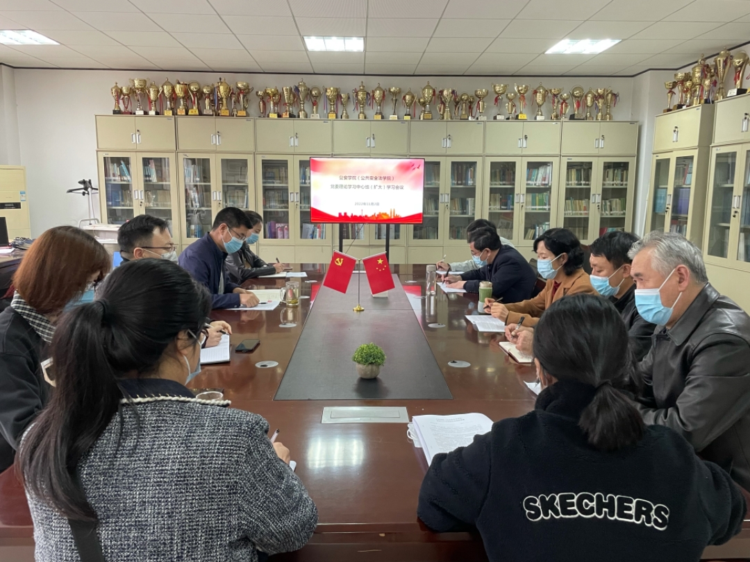 11月2日下午,公安学院(公共安全法学院)党委理论学习中心组(扩大)会议以线上线下相结合的方式召开,专题学习中国共产党第二十次全国代表大会精神。学院领导班子成员、党委委员、各支部书记、科级以上干部参加会议,学院党委书记李永宁主持会议。