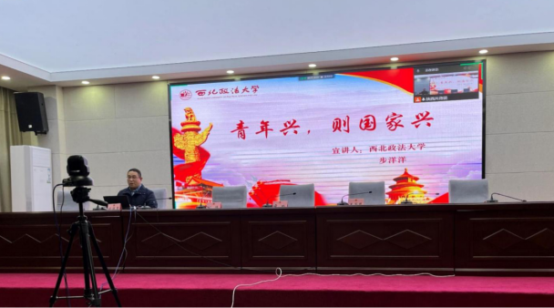 为进一步推动陕西共青团党的二十大精神宣讲工作,进一步做好宣讲工作部署,在全省各级团组织中迅速兴起学习宣传贯彻热潮,团省委于11月21日下午以视频会议形式,召开团省委党的二十大精神示范宣讲暨培训会议。beat365青年讲师团成员步洋洋受邀参加会议,并以“青年兴,则国家兴”为主题进行示范宣讲。