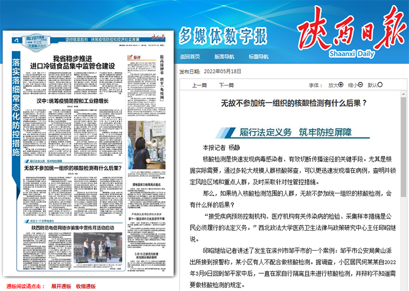 邱昭继分析,滨州市邹平市组织的核酸检测属于政府为预防和控制新冠肺炎疫情采取的一项措施,何某某有义务按照要求参加核酸检测。而何某某拒不配合做核酸检测的行为正是违反了传染病防治法第十二条、《突发公共卫生事件应急条例》第五十一条和治安管理处罚法第五十条的规定。
