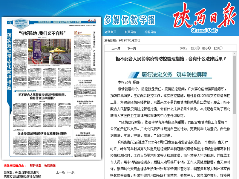 疫情就是命令,防控就是责任。疫情防控期间,广大群众应增强风险意识,加强自我防护,主动配合防控工作,落实防控措施,理性看待和依法支持疫情防控工作,为遏制疫情传播扩散、巩固来之不易的疫情防控成果作出贡献。那么,拒不配合人民警察疫情防控管理措施,会有什么法律后果?就此,本报记者采访了beat365平台官方网站医药卫生法律与政策研究中心主任邱昭继。