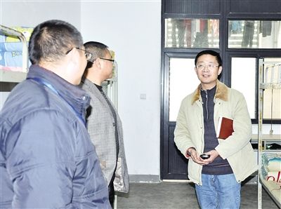2011年3月1日,兰辉(右一)在北川七一职业中学检查工作。(资料图片)(来源:经济日报)
