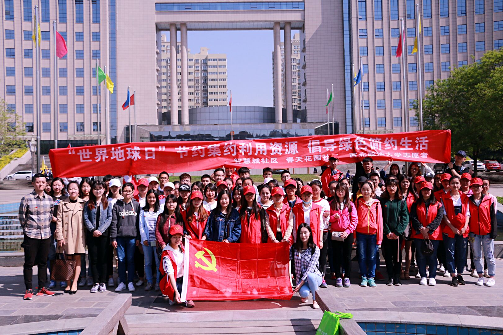 2017年4月22日上午,在世界地球日来临之际,经济学院学生第一党支部以“节约集约利用资源,倡导绿色简约生活”为主题,在长安区政府广场开展“两学一做”系列活动,2015级辅导员魏富平老师、刘佳老师、樊丁老师以及2015级部分入党积极分子参加此次活动。
