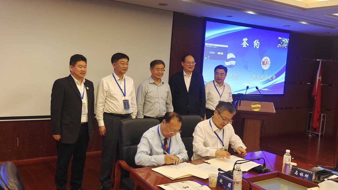 涉外法治研究中心执行主任、丝绸之路区域合作与发展法律研究院院长、博士生导师王瀚与青岛大学党委副书记肖江南共同签署了共建上合经贸法律服务研究院协议。