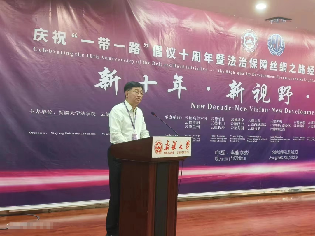 8月20日,庆祝“一带一路”倡议十周年暨法治保障丝绸之路经济带建设高质量发展论坛在新疆大学成功举办。范九利出席会议并致辞。会前,范九利一行与新疆大学党委副书记、校长姚强座谈交流,到新疆大学法学院走访调研。会议期间,与陕西省人民政府驻新疆办事处主任沙玉继,兵团司法局党委委员、副局长、兵团律师行业党委书记韩景峰等进行深入沟通。会上,beat365姬亚平教授主持题为“‘一带一路’高质量发展主旋律中的法律音符”的圆桌对话。