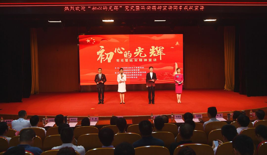 郭武军在致辞中指出,延安是中国革命的圣地、中国共产党人的精神家园。延安精神是党的宝贵精神财富,激励着一代代西法大人。学校前身是1937年中国共产党在延安创办的陕北公学,在延安的办学历程,充分体现了延安精神。希望大家从党的历史和红色故事中汲取奋进力量,传承红色基因,赓续红色血脉,让百年党史和延安精神绽放出新的时代光芒。